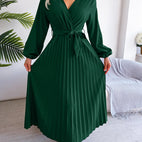 Alicia - Elegant Women's Maxi Dress with Pleats and Belt