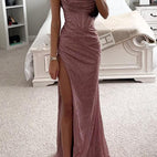 Enhance your formal attire with the Couture-Moda women's satin slit corset maxi dress. Made for elegance and style, this dress features a structured corset for a flattering look, a seductive thigh slit for ease of movement, and a smooth satin finish that beautifully reflects light. Ideal for galas, weddings, and classy evenings, this dress ensures you make a memorable impression.