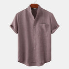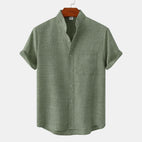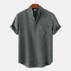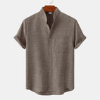 Bastien - Men's short-sleeve linen shirt with a lapel collar