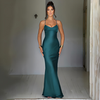 The Bianca long dress blends classic elegance with a flattering fitted shape. Its soft and flowy fabric drapes well, crafting a balanced silhouette that highlights your natural curves. The draped neckline and slim straps provide a sophisticated and feminine element, ideal for evenings, weddings, or formal gatherings. Lightweight and comfy, it allows easy movement while maintaining an elegant and fashionable appearance. A versatile and stylish dress symbolizing sophistication and modern chic.