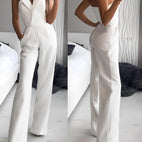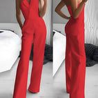 The Blaire sleeveless V-neck jumpsuit is ideal for a chic and straightforward outfit.