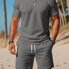 The Calvin summer outfit represents the pinnacle of exclusive men's summer fashion. This casual luxury set stands out with its superior craftsmanship and well-designed features, perfectly marrying comfort with style. It's the top pick for men who aim to remain fashionable in summer without losing comfort. Experience the perfect mix of lightness and style, making this set a must-have for your summer closet.Reasons to include the Calvin Exclusive Summer Set in your wardrobe:Top-quality materials:Chosen fabrics offer both a soft touch on the skin and long-lasting wear.Innovative design: