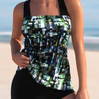 This tankini set combines a flattering fit with practical freedom of movement. The longer top provides a secure feeling, while the shorts offer additional comfort. Ideal for the beach, pool, or vacation. The design is both modern and timeless. Perfect for women who want to feel fashionable and comfortable.