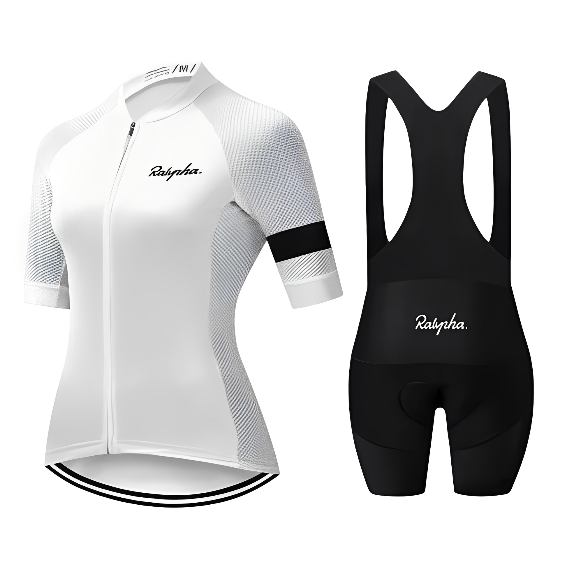 The Dahlia women's cycling outfit provides performance, comfort, and style. This professional cycling set comes with a breathable jersey and matched shorts, crafted from light moisture-wicking fabric, designed to keep you cool and dry on long rides, intense workouts, or outdoor adventures. The ergonomic design fits your body for better aerodynamics and more freedom to move. A top-notch women's cycling apparel set, aimed at comfort, durability, and top performance.