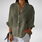 The stylish Dartha summer blouse for women is crafted to provide optimal comfort while giving you a chic and natural appearance. Made from soft, breathable material, this women's blouse feels light on the skin and has a beautiful drape for a flattering fit. Its sophisticated design makes it ideal for work, brunches, casual outings, or summer nights. Pair it with skirts, pants, or shorts for a stylish and versatile look. This elegant blouse is a must-have for women who want to be fashionable without giving up comfort.