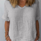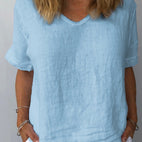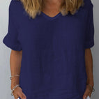 This casual cotton and linen top for women is a great pick for your daily outfits, offering both comfort and adaptability. Crafted from a soft, breathable mix, it provides a loose fit for unrestricted movement while keeping you cool and fashionable. Match it with shorts or jeans for a laid-back style, perfect for any casual event.