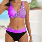 The chic Joana women's bikini in warm shades combines stylish design with a comfortable fit for a self-assured summer look. Made from soft, stretchy, and quick-drying material, this bikini provides maximum comfort whether you're swimming, sunbathing, or lounging by the pool. Its flattering design enhances your natural shape while offering reliable support and coverage. The vibrant, warm print adds a touch of elegance and flair to your beach or pool attire. Ideal for vacations, beach outings, or poolside gatherings, this bikini is a must-have summer piece for every woman.