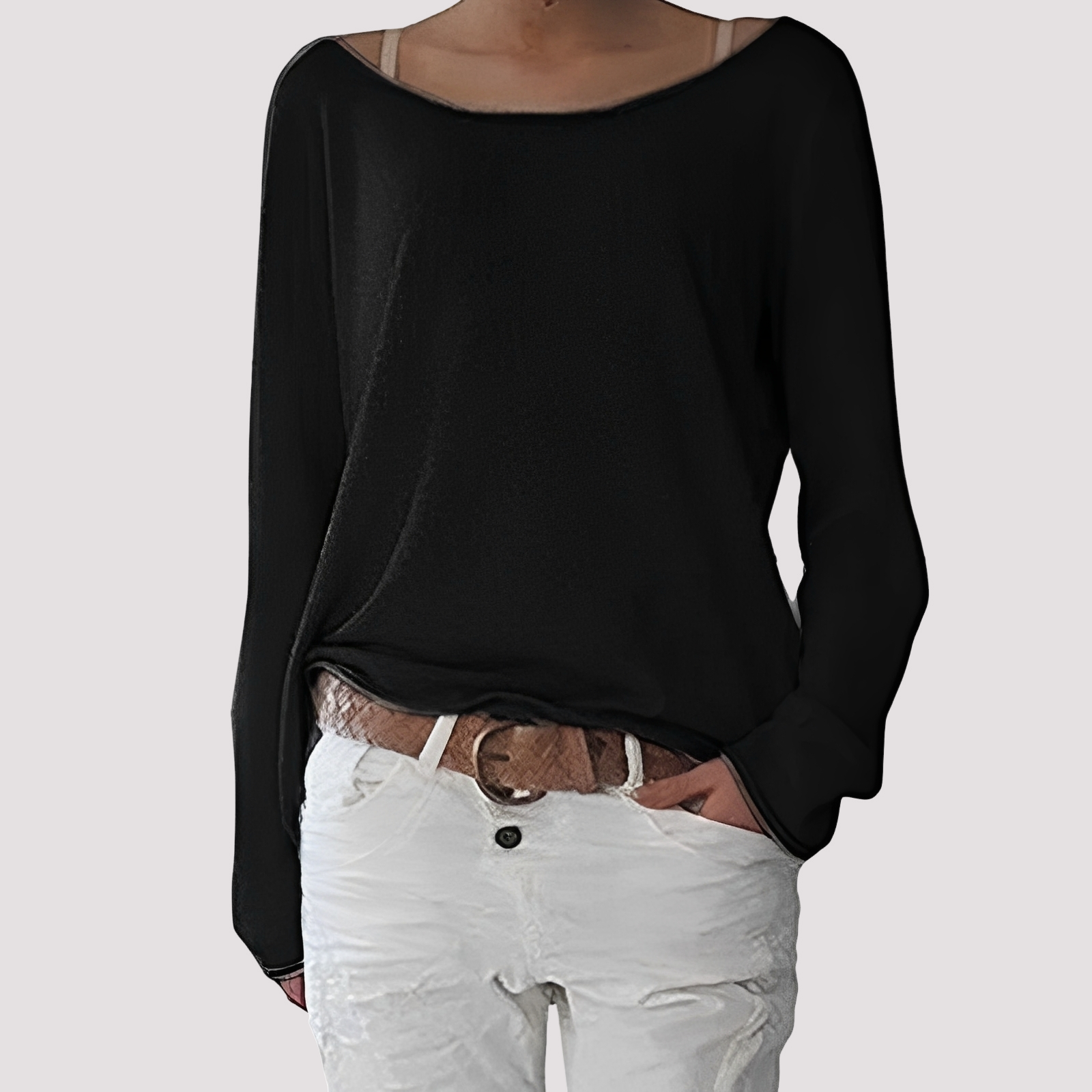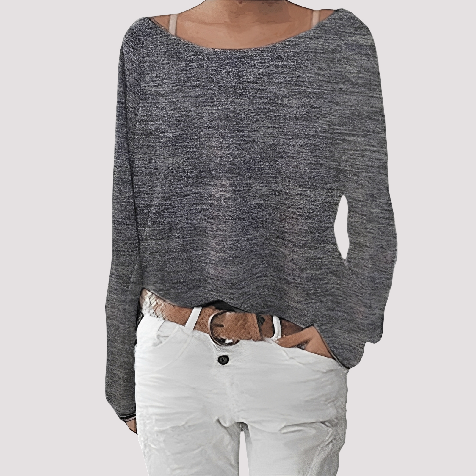 The long-sleeve shirt "Joanna" impresses with a loose fit and comfortable fine knit material. The classic round neckline ensures a timeless look. The comfortable fit makes it ideal for everyday wear and cozy hours. Easy to combine and versatile for any season.