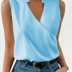 The "Juna" top blends simple elegance with a summery feel. Its chic V-neck and sleeveless design make it perfect for different occasions – whether at work, wandering the city, or having dinner outside.