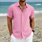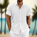 Enhance your summer closet with this textured, buttoned short-sleeve men's shirt Lance, crafted for a laid-back summer look. Made from a light and airy fabric, this men's casual summer shirt keeps you cool while ensuring a comfortable and easy fit. Its subtly textured design adds depth and a contemporary flair, making it ideal for vacations, beach trips, casual gatherings, or everyday wear. Its classic buttoned front offers versatile wear, either open over a t-shirt or fully buttoned for a stylish and casual appearance. A must-have summer shirt for men, blending comfort with easy style.