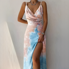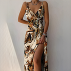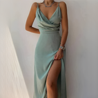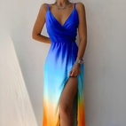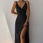 Choose natural beauty with this sleeveless V-neck long dress for women Luzy, designed for a fresh and bold look. Crafted from a light and breathable fabric, this summer long dress provides a comfortable wear while flowing gracefully with every move. The deep V-neckline accentuates the feminine shape, while the side slit introduces a hint of sophistication and elegance. Ideal for evenings, summer events, vacations, or casual gatherings, this chic long dress pairs effortlessly with heels or sandals. A classic long dress for women that blends comfort, adaptability, and elegant fashion.