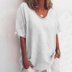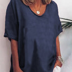 Explore our breathable summer blouse, which not only exudes style but also ensures optimal comfort. The lightweight and airy fabric keeps you comfortable all day long. Whether you're at the office, exploring the city, or meeting friends, this blouse is a versatile essential for your summer wardrobe. Select your preferred option from a diverse range of colors and sizes.