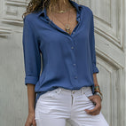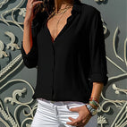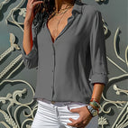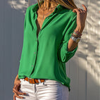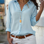 The women's long sleeve top is both stylish and comfortable, made with soft and breathable fabric, a relaxed fit, a collar, front buttons, and long sleeves. It enhances your charming silhouette, and you'll feel fantastic wearing it, receiving plenty of compliments for your everyday look.