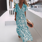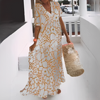 The Pheoby stylish summer dress for women showcases a flattering V-neckline and a trendy printed design for a chic and feminine appearance. Created with a loose and easy fit, this flowing dress provides excellent comfort and breathability on warm days. The lightweight fabric is soft and allows for easy movement, making it ideal for daily wear, trips, or casual get-togethers. Its adaptable style looks great with sandals, sneakers, or heels. A must-have printed summer dress for women who appreciate comfort and effortless fashion.