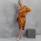 The Rhianne asymmetrical midi dress for women is crafted to deliver a striking and sophisticated appearance for any special event. Its tailored and ruched design emphasizes your curves while providing maximum comfort and flexibility. The chic asymmetrical cut introduces a contemporary and fashionable flair that effortlessly stands out. Ideal for parties, dates, weddings, or evening gatherings, this trendy midi dress merges sophistication with self-assurance. A must-have elegant dress for women, blending style with comfort.